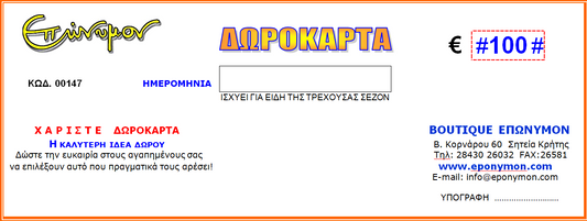 ΔΩΡΟΚΑΡΤΑ ΕΠΩΝΥΜΟΝ e-Gift Card