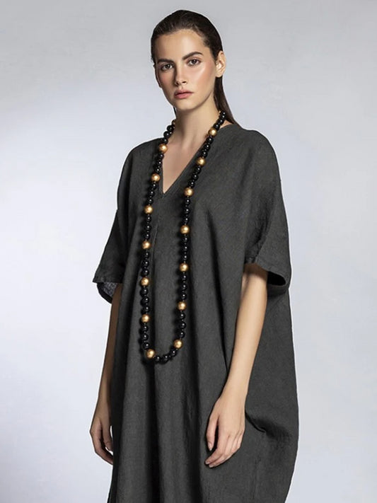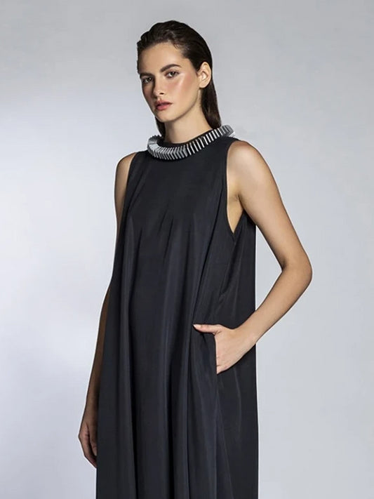 Γυναικείο Βαμβακερό Αμάνικο φαρδύ Μίντι Φόρεμα
