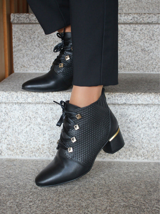 Γυναικεία δερμάτινα μποτάκια με διακοσμητικά τρουκς -Τελευταίο Ν:40