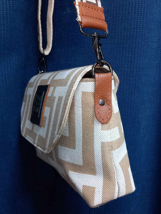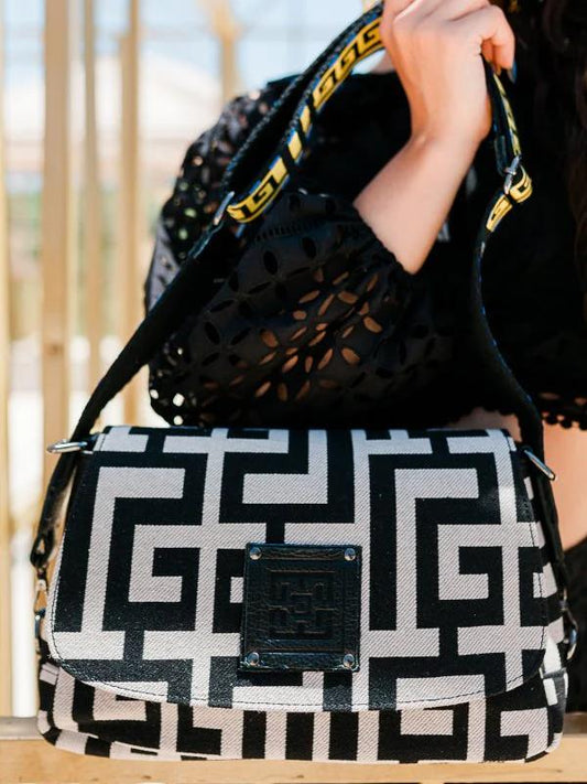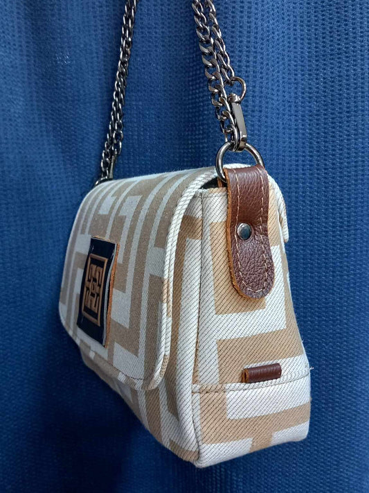 Midneto Helios Beige Black Chenille Γυναικεία Τσάντα
