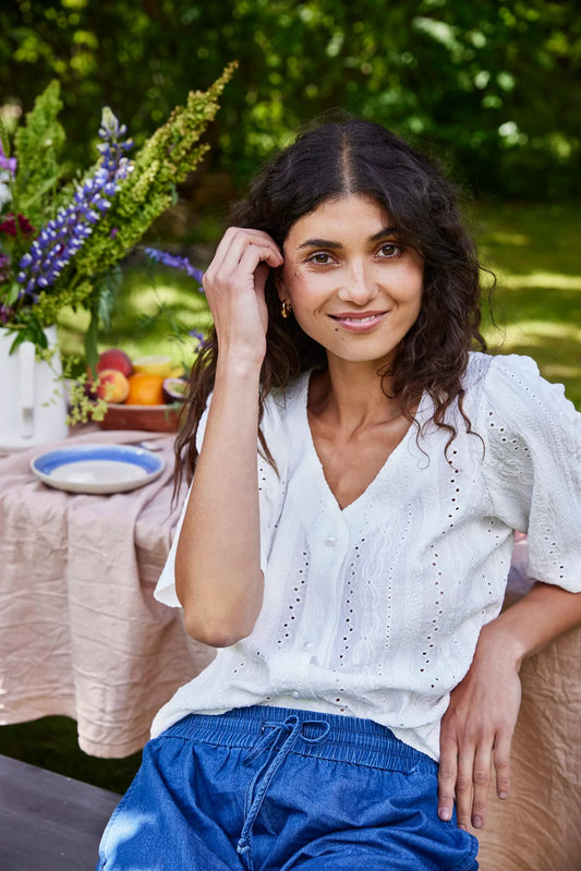 Γυναικείο πουκάμισο δαντέλα -Λευκό