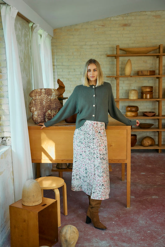 Γυναικεία πλεκτή ζακέτα- Λαδί