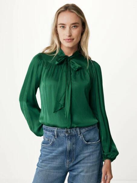 Γυναικεία Πουκαμίσα με παπιγιόν λαιμόκοψη σκούρο πράσινο