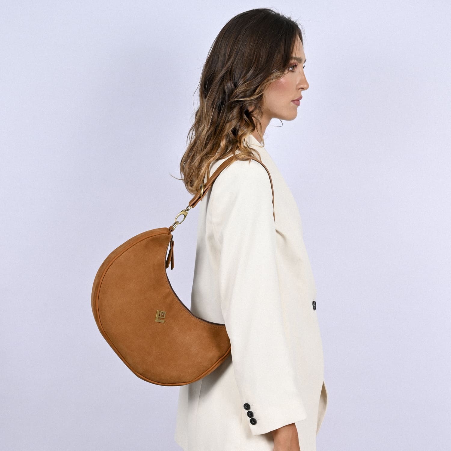 Η Luna bag θα σε κερδίσει από την πρώτη στιγμή, με τον ιδιαίτερο σχεδιασμό, την πολυπλοκότητα της και τα ποιοτικά υλικά. Κατασκευασμένη από εξαιρετικής ποιότητας 100% recycled suede leather. Tο ευρύχωρο εσωτερικό της είναι ικανό να χωρέσει όλα όσα χρειάζεται μία ιδιαίτερη έξοδος. Στο εσωτερικό της θα βρεις υφασμάτινη φόδρα, μία τσέπη για το κινητό σου που κλείνει με φερμουάρ και μία θήκη κλειδιών, ενώ κλείνει για μεγαλύτερη ασφάλεια με φερμουάρ.