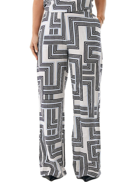 Γυναικείο μαύρο παντελόνι με γεωμετρικό σχέδιο