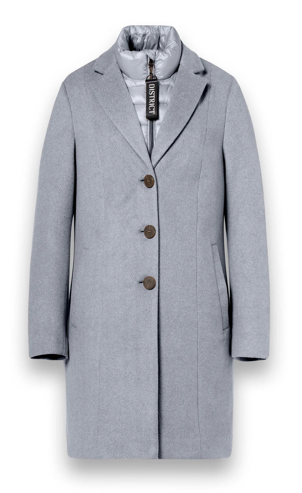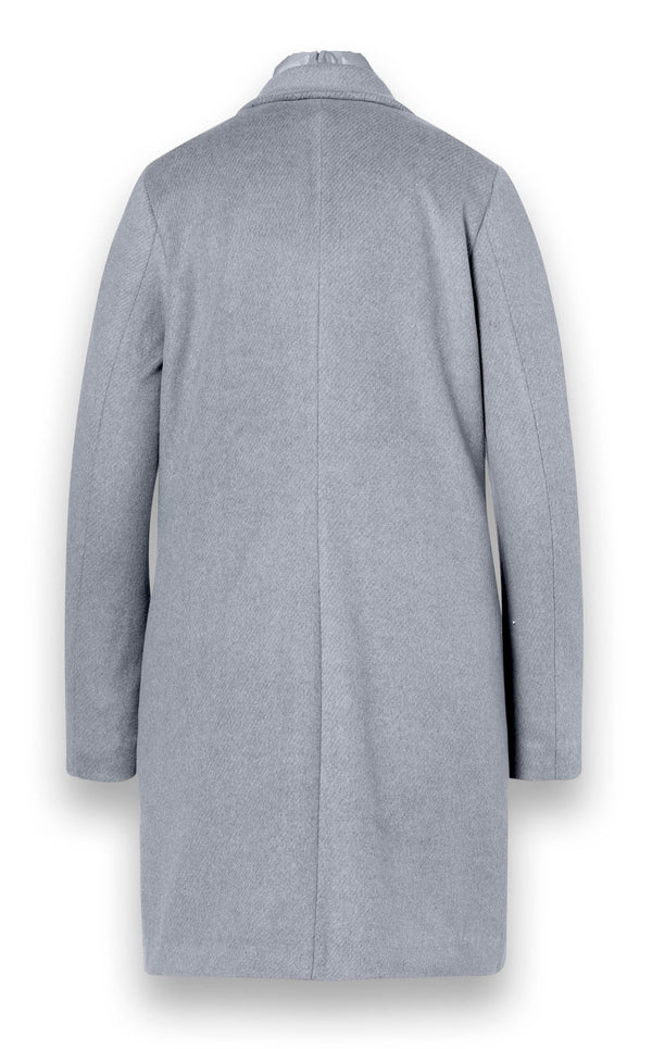 Μακρύ μάλλινο παλτό με αφαιρούμενη "εσωτερική επένδυση". Δύο τσέπες με ρέλι και κλείσιμο με τρία κουμπιά μπροστά. Φόδρα με εσωτερική τσέπη και κλείσιμο με κουμπιά.