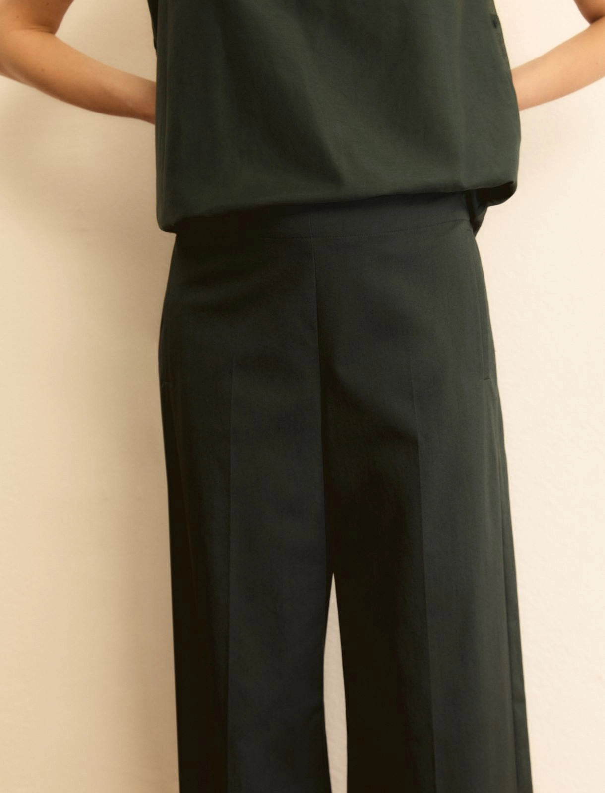 Γυναικείο Παντελόνι γκαμπαρντίνας σε ίσια γραμμή - ΣΚΟΥΡΟ ΠΡΑΣΙΝΟ
