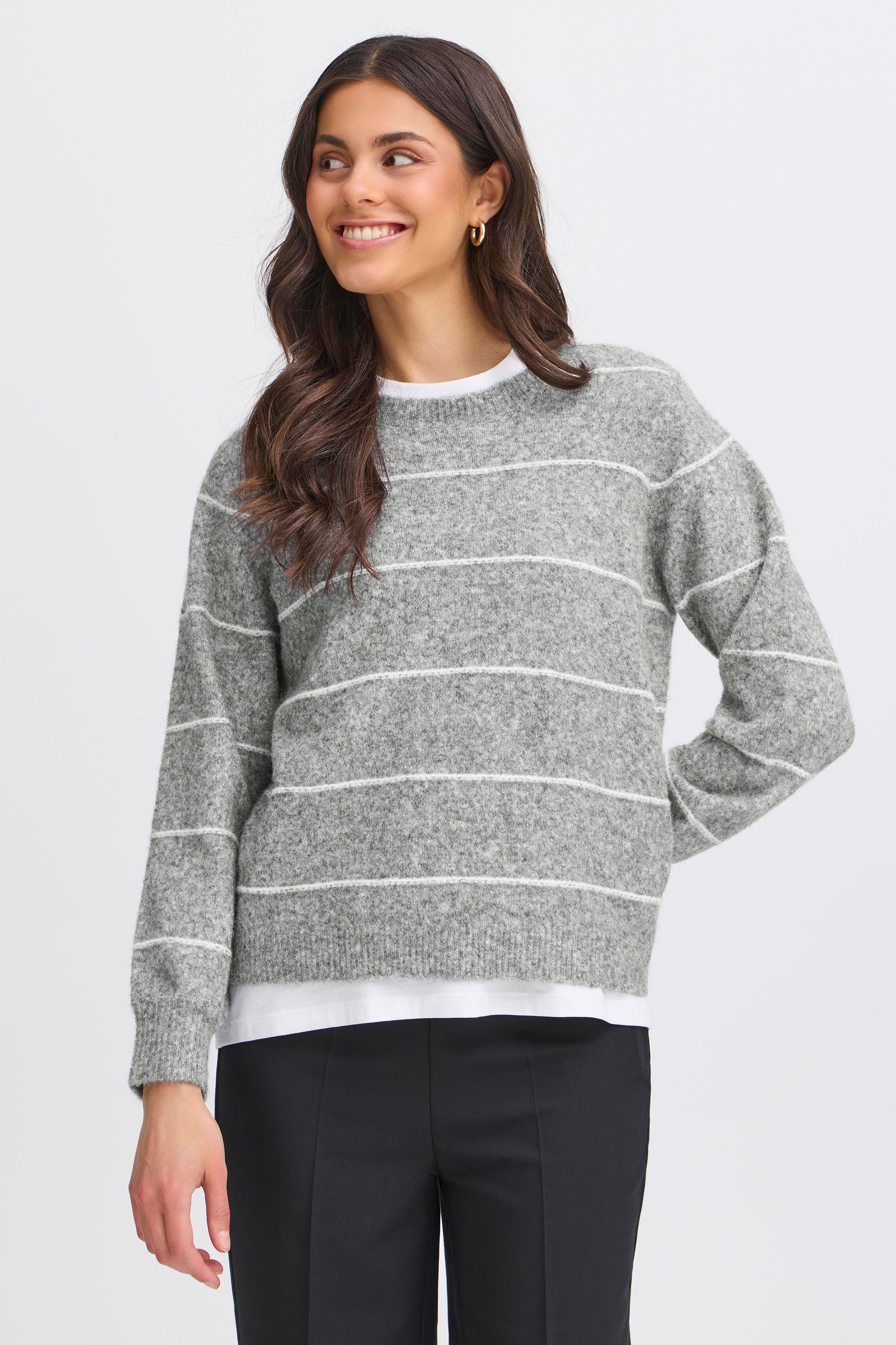 Γυναικείο πουλόβερ. ανάλαφρη, ζεστή πινελιά στην γκαρνταρόμπα σας με το πουλόβερ Fransa. Αυτό το απαλό πλεκτό ύφασμα διαθέτει διακριτικό σχέδιο με ρίγες σε ουδέτερη απόχρωση, ιδανικό για χαλαρές μέρες. Κατασκευασμένο από 53% ανακυκλωμένο πολυεστέρα, 39% ακρυλικό, 5% μαλλί και 3% ελαστάνη, προσφέρει απαλή ζεστασιά, ενώ παραμένει εύκολο στη χρήση. Συνδυάστε το με τζιν ή tailored παντελόνι για άνετο καθημερινό στυλ.