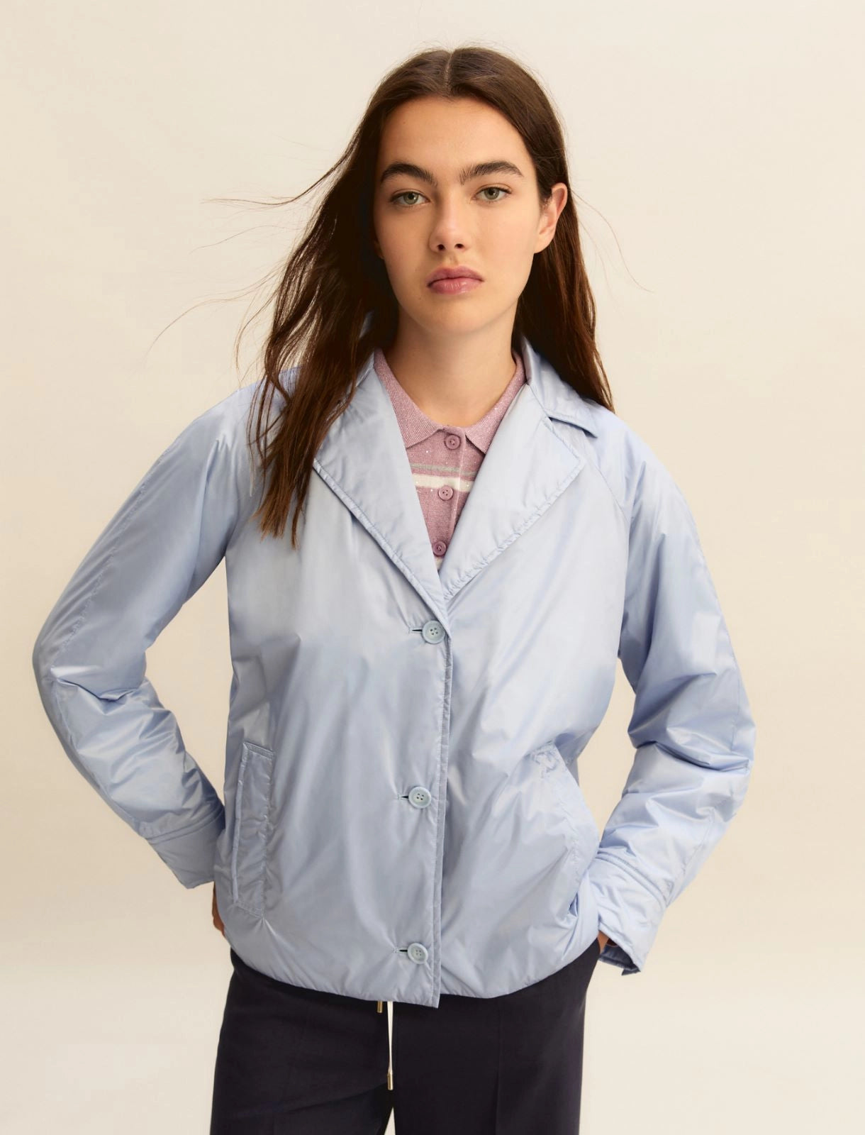 Γυναικείo Κοντό αδιάβροχο - DUST BLUE- EMMPALAZZI